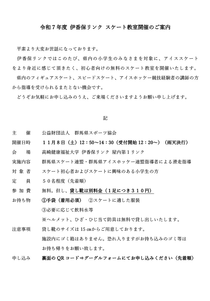 〒371-0047 前橋市関根町800番地 ALSOKぐんま総合スポーツセンター内 本館一階