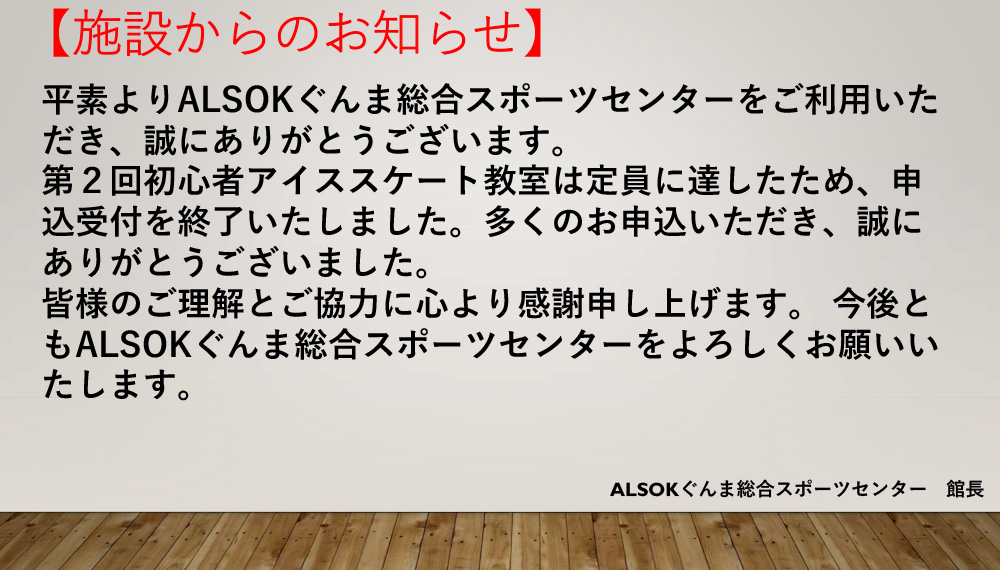 〒371-0047 前橋市関根町800番地 ALSOKぐんま総合スポーツセンター内 本館一階