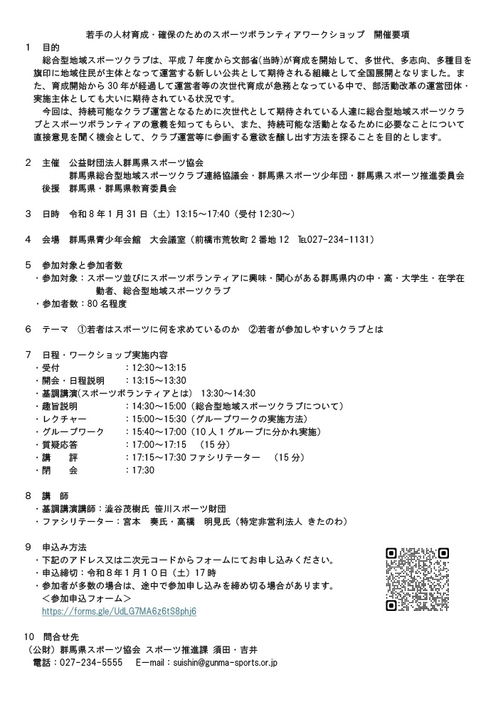 人材育成・確保のためのスポーツボランティアワークショップの開催について